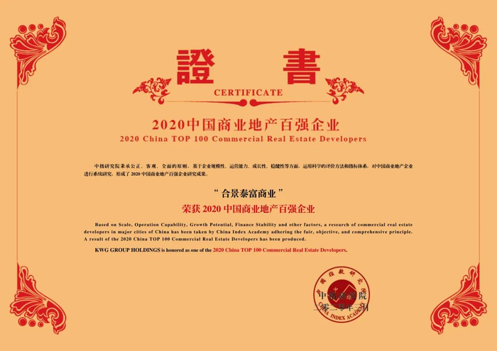合景泰富商业凭借前瞻性的战略布局、多元协同的业务布局、持续增长的业绩表现、稳健卓越的盈利能力等超强综合实力勇夺2020中国商业房地产百强企业第8强。首次迈进商业地产top10榜单,是对合景泰富商业综合实力的最佳印证。