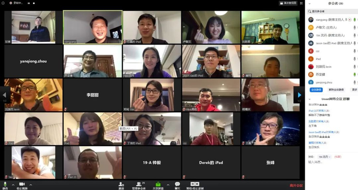 3月20日晚上七点半,在19-A班委的组织下,清华经管EMBA19-A班举办了一场温馨、别开生面的主题为“疫情影响和疫情后发展思考”的云班会。同学们登陆李向阳同学公司的云会议产品umeet视频软件亮相,表达对彼此的思念,亲爱的同学们“好久不见”。清华经管EMBA教育中心主任贾莉老师和副主任李谦老师参加了这次云班会。