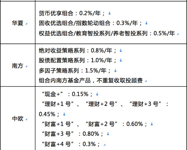 券商中国记者体验发现,上支付宝搜“帮你投”,后台系统会给每一位用户做风险测试、得出不同的目标收益率建议,并推荐匹配的基金组合;在费率上,该平台投顾服务费按每日总资产的约0.0014%计算(年化总资产的0.5%),取按季收取。