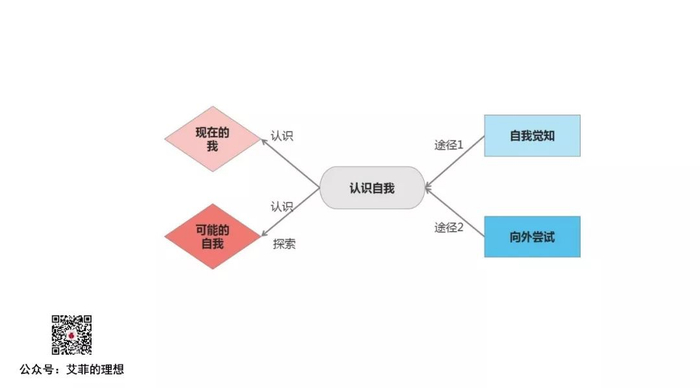 因为这里一共有两个自我,一个是“现在的自我”,一个是“可能的自我”。“现在的自我”说的是“我是谁?”,而“可能的自我”说的则是“未来的我可能成为何种模样?”