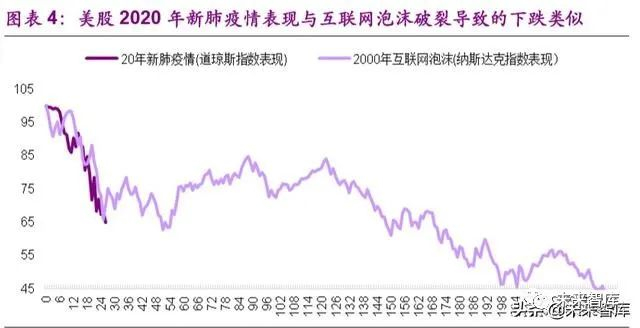 2000 年后互联网泡沫破灭后如何演绎:美股因泡沫破裂而带来的恐慌 性下跌已然进入下半场,之后将逐步告别恐慌、回到基本面变化主导,进入 到等待数据的磨底阶段。本次美联储快速政策的及时对冲有利于缓解美股短期再次出现崩盘式下跌,但考虑到对二季度全球经济增长的悲观预期,且疫 情何时见顶仍存在不确定性,市场大幅反弹的动力也不大。