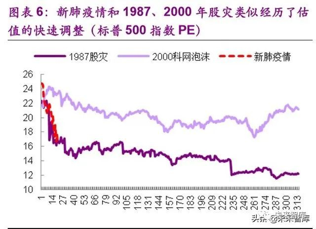 从下跌背后的逻辑上看,本次崩盘更多的和 2000 年科网泡沫破裂类似, 本质上是一次股市估值历史高位后,因为种种偶发的原因触发的结果。(1) 未来不是大萧条,凯恩斯主义指导下的政府干预有助于防止经济长期陷于衰 退;(2)未来不是大衰退,长达十年的严格监管,以及尚未发现资产负债 表问题,意味着美国当前面临也不是大衰退;(3)本次美国三大股指同时 大崩盘,而不是像科网泡沫破裂那样仅仅是纳斯达克受到较大冲击,预计本 次大崩盘对美国经济的伤害要远高于科网泡沫破裂。
