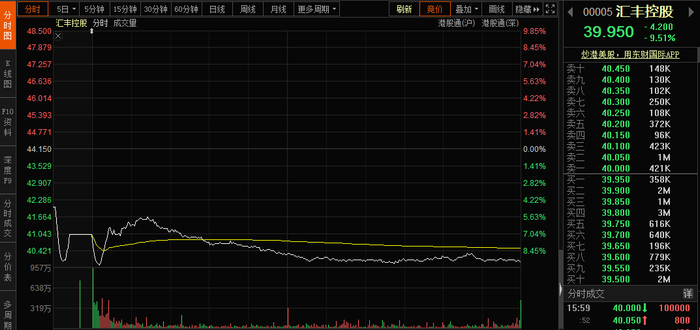 受取消派息消息影响,投资者纷纷用脚投票,汇丰控股早盘大幅低开,报收39.95港元/股,下跌9.51%。