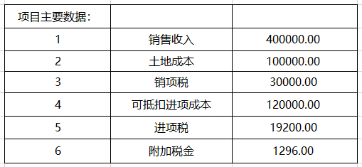 上述主要数据中,为简单起见,销项税的计算采用销售收入与土地成本的差额,实际计算参照《房地产开发企业销售自行开发的房地产项目增值税征收管理暂行办法》;土地增值税计算中,开发费用按照《土地增值税暂行条例实施细则》中相关比例进行扣除(不区分是否有借款行为),按照实际超率累进税率进行计算;土地增值税计算和成本收益分析中,只考虑增值税附加和土地增值税,不考虑其他与转让和持有房地产相关的税金。(销项税延用10%,进项税延用16%,不影响结论)