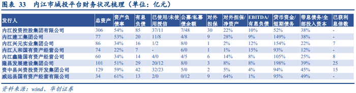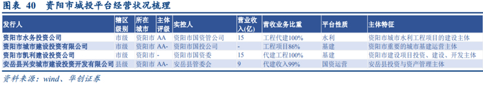 需要注意的是,不同地区城投债收益率的高低一方面与地区经济、财政和债务负担有关,另一方面城投平台自身的信用基本面会较大程度上影响平台城投债收益率的高低,如所从事业务的公益性强弱、平台的所属行政级别和财务指标等。