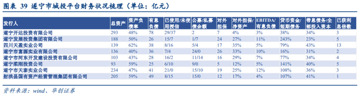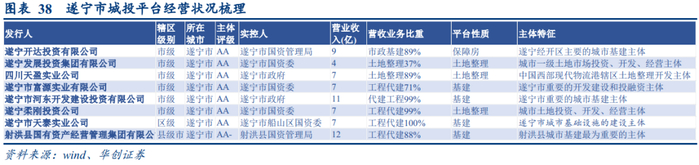 遂宁市位于四川盆地中部腹心,是成渝经济区的区域性中心城市,四川省的现代产业基地,以遂宁锂电新材料、电子信息、油气盐化工、冶金建材为支撑产业,上市公司有创维数字、四川美丰、印纪传媒、天齐锂业等,遂宁全市共8家城投平台,其中6个市级城投平台、1个区级市平台和1个县级市城投平台。遂宁市总面积5300平方公里,下辖2个辖区(船山区、安居区)、1个县级市(射洪县)、2个县(蓬溪县、大英县),射洪县是2019年中国西部百强县之一,2018年遂宁市常住人口达到365.25万人,遂宁是四川省战略部署建设的“六大都市区”之一,是成都经济圈和成都平原城市群的重要组成部分,遂宁经济技术开发区,于 2012年被国务院批准为国家级经济技术开发区,是省知识产权试点园区、省首批特色高新技术产业化基地、中国光电产业制造基地。