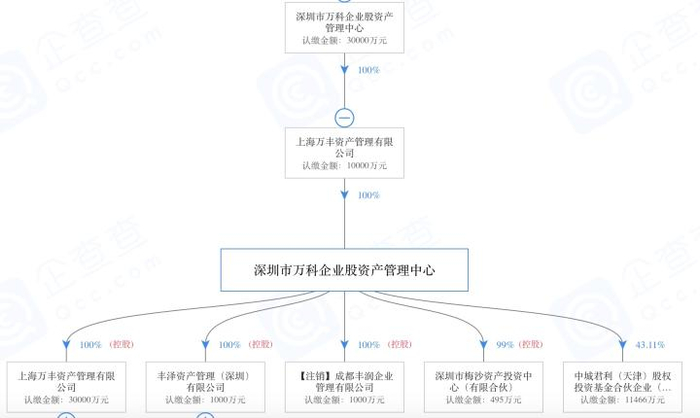 紧接着4月7日,深圳市万科企业股资产管理中心正式成立,注册资本1亿元,实际控制人是王石为代表的创业团队,最早由万科企业股份有限公司100%持股。