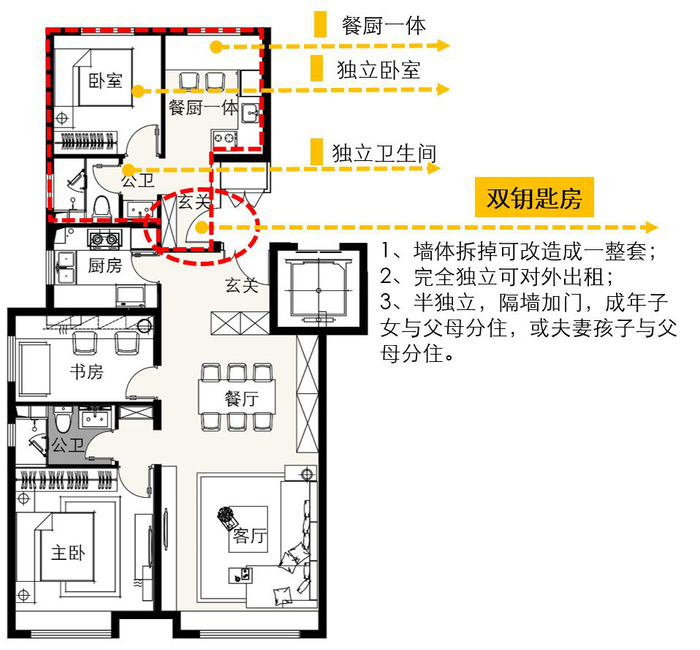 7.玄关具有必要性:提供入户过渡的空间,用于人员洗手、物品消毒,安全健康地进入室内环境,同时实现一定的收纳功能,放置外带物品、消杀器具等;