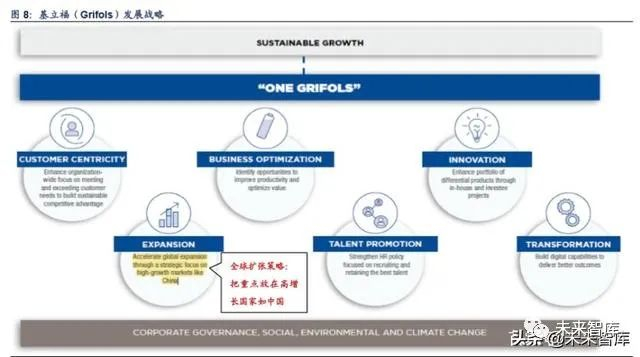 中国市场在基立福(Grifols)公司全球化战略中占据重要地位,在基立福(Grifols)的 2019 年年报中,中国被定位为新兴市 场和高增长国家,并且公司未来的战略中提出“全球扩张策略要把重点放在高增长国家,如中国”和“基立福(Grifols)将继 续加强全球市场战略,尤其是在公司的重要市场美国和新兴市场中国” 。