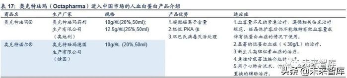 奥克特珐玛公司最早进入中国市场的是奥地利工厂生产的奥克特珐玛®人血白蛋白注射液,包括 10g/瓶(20%,50ml)和 12.5g/ 瓶(25%,50ml)两种规格。2019 年 5 月,奥克特珐玛公司德国工厂生产的人血白蛋白奥克特诺尔®投入中国市场。