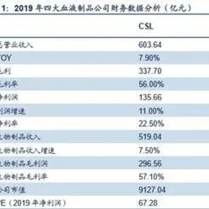 2019 年杰特贝林(CSL Behring)、基立福(Grifols)和奥克特珐玛(Octapharma)公司的生物制品(主要为血液制品)收 入均保持增长,其中杰特贝林(CSL Behring)生物制品营业收入约 519 亿元,同比增长 7.5%,基立福(Grifols)生物制品 业务约 307 亿元,同比增长 13.6%。奥克特珐玛(Octapharma)(奥克特珐码)约 170 亿元,同比增长 23.2%。