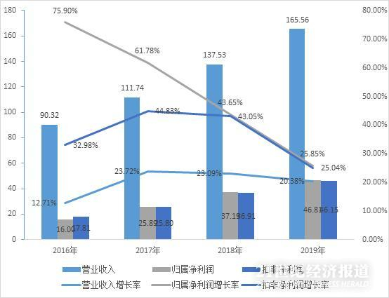 4月1日,迈瑞医疗(300763.SZ)披露2019年年度报告。报告期内,迈瑞医疗实现营业收入165.56亿元,较同期增长20.38%;归母净利润46.81亿元,较同期增长25.85%;扣非净利润46.15亿元,较同期增长25.04%。从增速上看,迈瑞依然保持不错的增长,但是归母净利润增速却已是连续三年下滑。