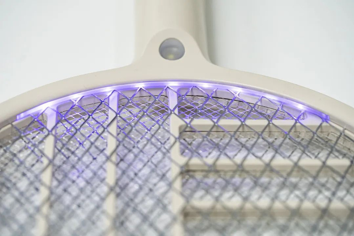 正面还设有一颗高亮度LED寻蚊灯,就是为了让你在黑暗环境中也能打到蚊子,不被蚊子所“叨扰”。