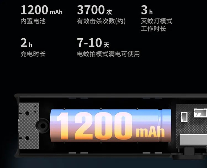 而向物电蚊拍就很好的改善了这个缺点,内置1200mAh环保电池。