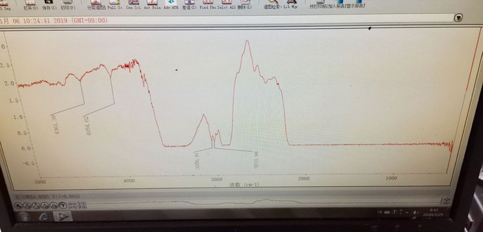 从外观上看,该手镯样品颜色带绿、透明度好、质地较为细腻。通过红外光谱检测发现,该样品有3030cm-1、3060cm-1、4060cm-1吸收峰,证明手镯有有机物质加入。