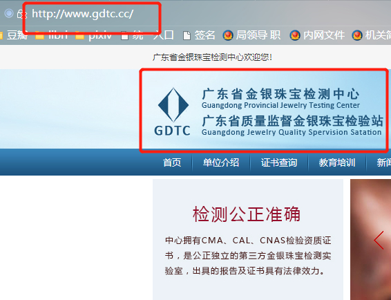 与此同时,小编又找到了广东省金银珠宝检测中心的官网。
