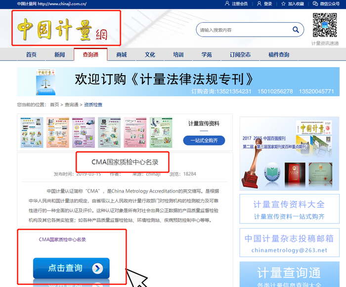 进入“国家级金银珠宝检测中心”的官网,可以看到该检测机构拥有CMA资质。只有取得CMA计量认证证书的第三方检测机构,才允许在检验报告上使用CMA章,于是小编便进入中国计量网官网CMA查询工具,却发现并没有该机构的踪影。