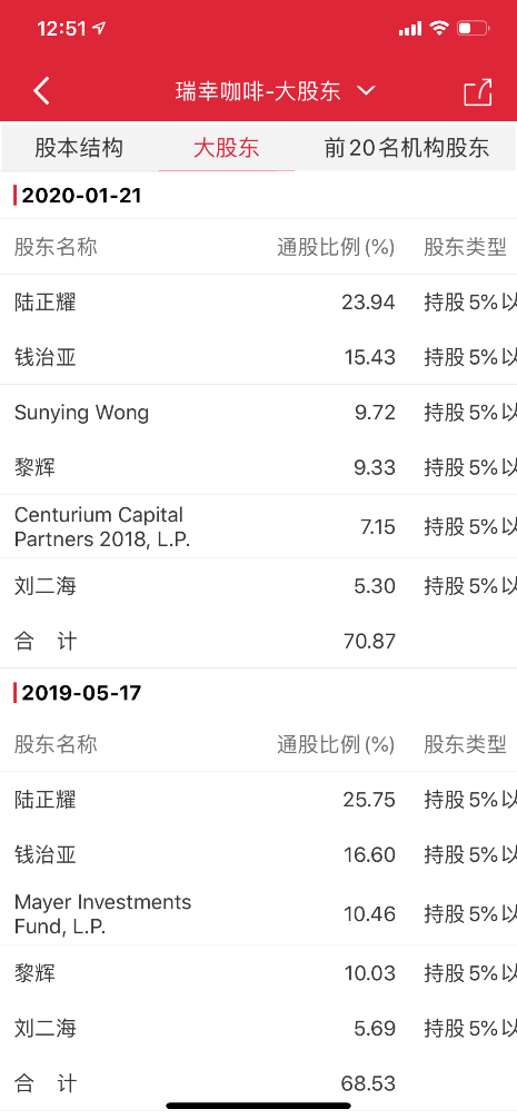 神州租车股价突然跳水,让业界立马联想到,与瑞幸咖啡自曝造假有,因为两家公司有着千丝万缕的联系。资料显示,神州租车大股东陆正耀与郭丽春直接持有神州租车6.3亿股,占已发行普通股比例发29.76%,系神州租车第一大股东;而瑞幸咖啡第一大股东也是陆正耀,持股23.94%,而该公司第二大股东钱治亚,持股15.43%,此前系神州优车董事和COO,2017年11月,钱治亚创业成立瑞幸咖啡。