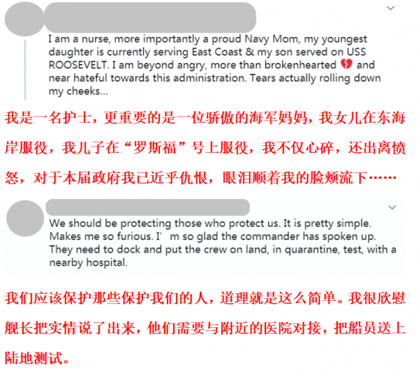 3月31日,克罗泽尔的亲笔信内容被媒体曝光,在美国引起轩然大波。有消息说,此前克罗泽尔曾与他的两大上级国防部长埃斯珀及代理海军部长莫德利有过激烈争执,克洛泽尔坚持了自己的立场,亲笔信曝光等于把争执公开化,让两位领导很没面子。不过,已经被惹恼的美国民众不管这么多,在社交媒体上大量留言“救救士兵们”。