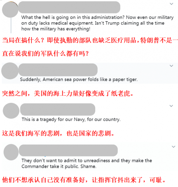 美军高层目前非常担心疫情削弱战力和威慑力,军方确诊人数是军事机密。但媒体让这个机密曝光,揭开了盖子,也对美军的心理造成了很大冲击,有影响军心之嫌。