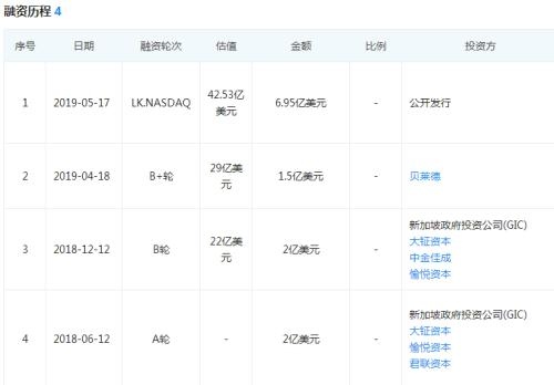 2018年6月,A轮融资2亿美元,资方包括大钲资本、愉悦资本、君联资本、新加坡政府投资公司等;12月,B轮融资2亿美元,资方包括大钲资本、中金佳成、愉悦资本、新加坡政府投资公司等;2019年4月,获得来自贝莱德1.5亿美元的B+轮融资。