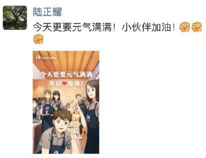 瑞幸董事长陆正耀也在3日发布朋友圈表示:“今天更要元气满满!小伙伴加油!”