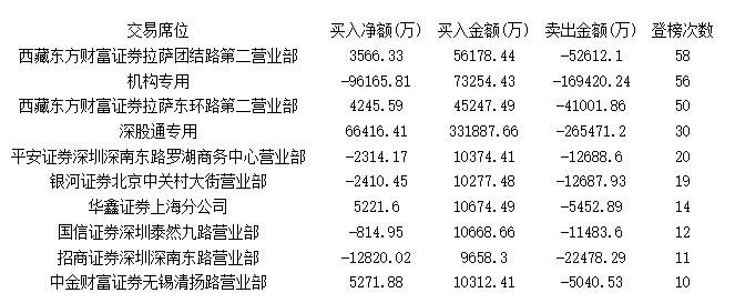 表三、本周登榜次数前十的席位