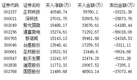 表一、本周主力净买入最大十股