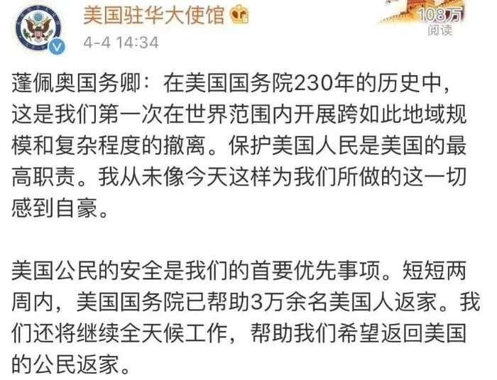 需要注意的是,那两次美国要求公民离开战乱之地;而这一次,是要求全球的美国公民回国!