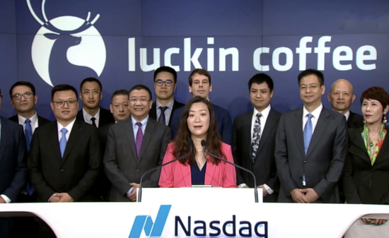 瑞幸上市,粉色西装为瑞幸咖啡创始人、CEO钱治亚