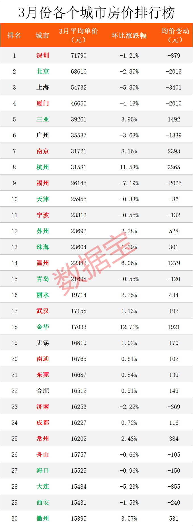 原标题:全国最新房价榜出炉,上海下跌最多,北深广也跌了,杭州大涨12%,长沙房价真良心