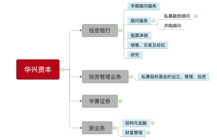 从本质上来说,华兴是一个对接资产和资金的平台,不同的业务类型都是以此为核心,在形式上变化。从资产端来说,华兴已经将投资标的从新经济领域非上市公司股权向外延伸,资金端也从机构投资者延伸至高净值人群和散户。至于匹配的方式,投行业务属于直接匹配,而投资管理、财富管理则是通过基金、资管产品进行间接匹配。