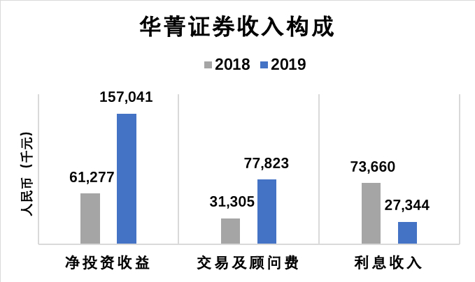 2019年,华兴投资管理业务收入为4.76亿元,同比增长52%。其中,基金管理费4.3亿元,附带收益4204万元。