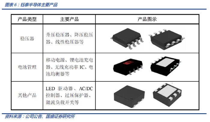 钰泰半导体是国内优质PMIC厂商,2019年受益TWS耳机、可穿戴、快充、移动电源等业务全面开花实现快速增长。钰泰半导体目前产品组合主要包括稳压器和电源管理相关产品,下游领域主要包括可穿戴、移动电源、路由器/机顶盒、手机、电表等应用领域。从披露数据来看,2017~2019年公司实现跨越式增长,利润分别为0.27万元、2514万元、6846万元。我们认为2020年业绩承诺考虑了全球经济及电子产品需求受疫情的负面影响,若疫情在Q2得到明显缓解,钰泰有望延续成长态势。