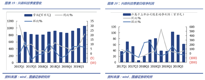 兴森科技于2020年3月30日公告2019年年报。2019年:收入38.0亿元,yoy 9.5%、净利润2.9亿元,yoy 36%;19Q4:收入10.52亿元,净利润0.61亿元,净利率5.8%。