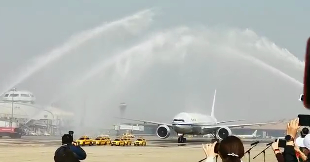 刚刚,飞机已经落地!民航用最高礼遇“水门”来为白衣天使接风洗尘!