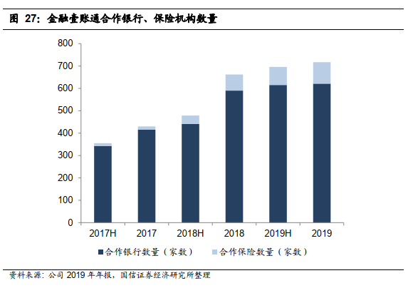 金融壹账通:于2019年12月成功登陆美国纽约交易所,是中国领先的商业科技云服务平台企业。金融壹账通将丰富的金融服务行业经验与领先的科技融合,为银行、保险、投资等各类金融机构提供全流程、全体系的解决方案。截至2019年末,金融壹账通累计服务621家银行、96家保险公司,包括国内100%的大型银行、99%的城商行和52%的保险公司,并通过这些机构触达数以亿记的终端客户。