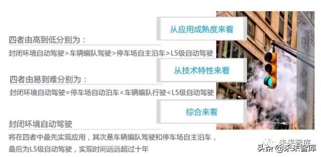 但对车辆编队驾驶、停车场自主泊车、L5级自动驾驶而言,由于大多为乘用车, 且相关法规层面的缺失,未来3年内或会进行示范应用,但暂时不会投入运营。
