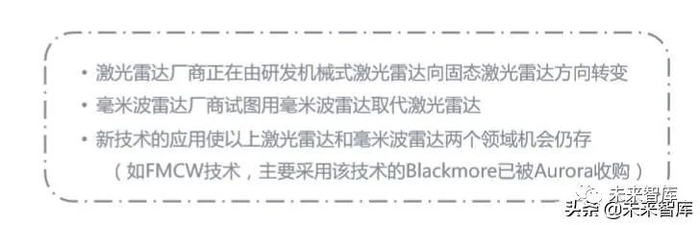亿欧汽车认为,作为感知领域关键零部件,激光雷达、毫米波雷达等将继续受到 关注。