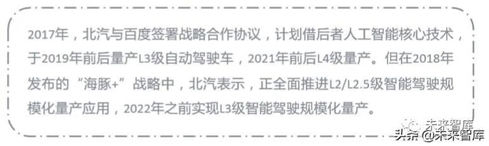 理论上讲,他们与车企结合后,能够共同打造一辆完整的自动驾驶车。当然,车 企与以上二者合作外,也在自研高等级自动驾驶技术,希望在汽车产业变革中实 现“弯道超车”。