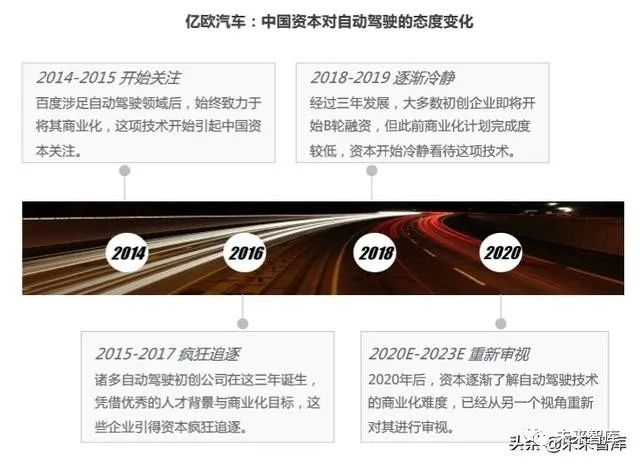 此后短短六年间,资本对自动驾驶的看法经历了开始关注、疯狂追逐、逐渐冷淡 三个阶段。未来三年,资本将站在新角度重新审视这项技术。