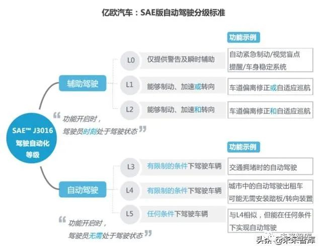 《汽车驾驶自动化分级》在制定过程中,参考了SAE J3016的0-5级的分级框架, 二者对每个具体的驾驶自动化功能分级结果基本一致。