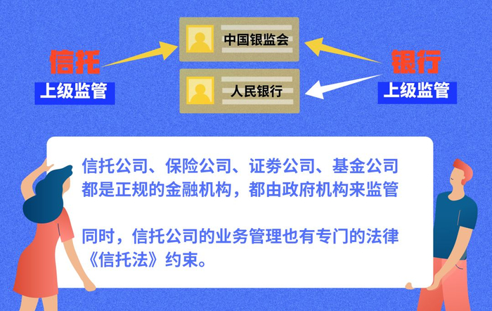 答:信托公司和银行都是有监管机构,银行的上级监管机构有银监会和人民银行,信托公司的上级监管机构也有中国银监会,在中国银监会的官方网站( http://www.cbrc.gov.cn )可以查询到所有信托公司的备案信息。