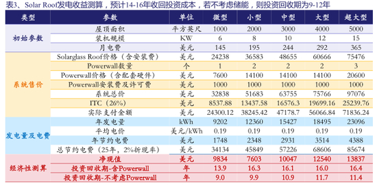2.3 Solar Roof V3不考虑储能投资回收期9-12年,考虑储能投资回收期14-16年,具备投资价值