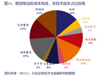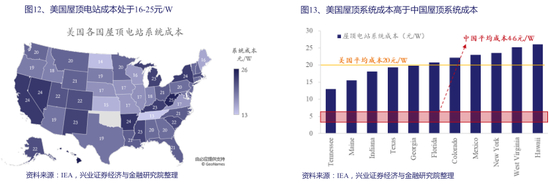 ●美国产品价格高比较普遍主要系非技术成本,根据IRENA测算,屋顶电站中组件、逆变器等核心成本占比25%,而非技术成本占比高达60%-65%。