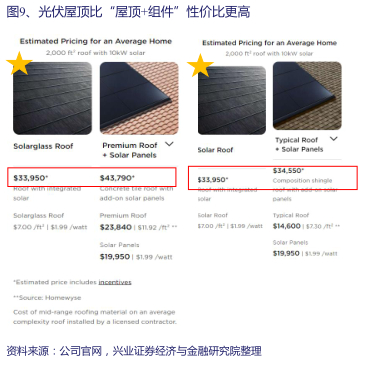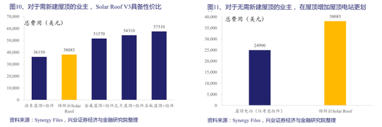 从综合售价来看,如果考虑屋顶成本,Solar Roof V3完全有能力对标“屋顶+组件”业务模式,初始售价上已经有显著优势。