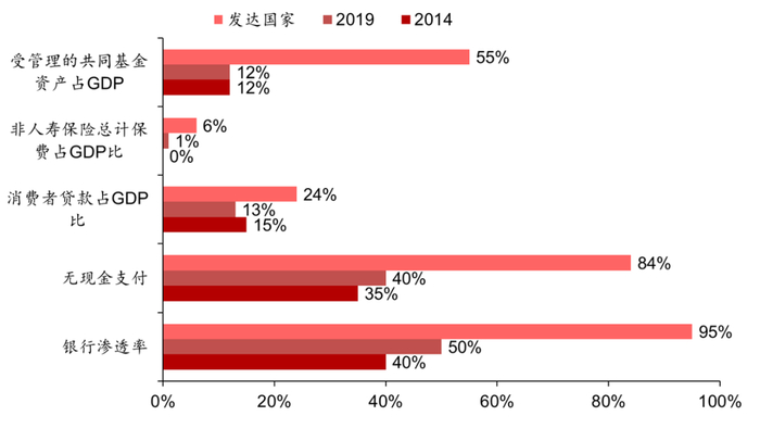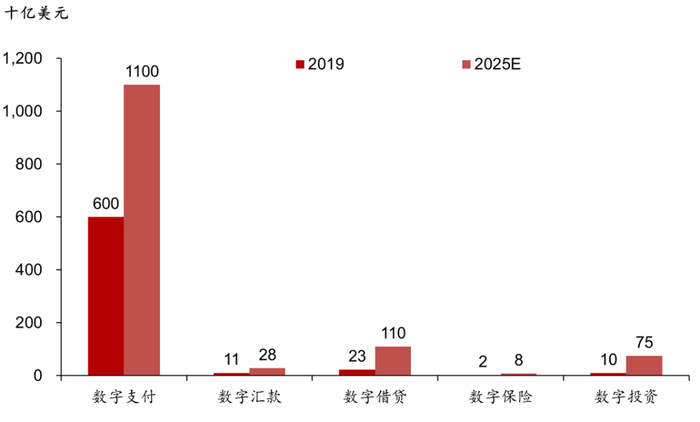 东南亚金融IT市场规模迅速增长。据贝恩咨询数据,从东南亚金融服务渗透率看,2014-2019年,无现金支付、银行服务、保险服务的渗透率均有所提升,从渗透率的相对水平看,东南亚国家的金融服务较发达国家均还有一定的差距,具有较大的提升空间。而据安永数据,2012-2017年东南亚金融科技融资额及融资事件均得到了快速的提升,期间融资额复合增长率达到92%,有力推动了东南亚地区金融科技建设。而据贝恩咨询数据,2019年东南亚地区数字支付及其他数字金融服务合计市场规模达到6460亿美元,预测至2025年,市场规模将达到13210亿美元,期间年均复合增速为12.7%。