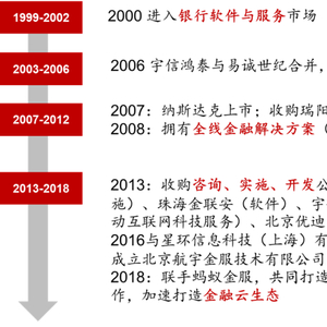国内领先银行IT解决方案服务商,拥有完整产品线。公司成立于1999年,最初以银行IT服务起家,是国内领先的银行业IT解决方案服务商。据IDC报告,中国银行业IT解决方案服务商市场占有率排名中,公司于2006年进入前五、2008年进入前三,2010-2017年连续七年位居第一。另一方面,自成立以来,公司通过收购不断扩充产品线,如今已经形成涵盖渠道类、管理类、业务类三大领域产品线。