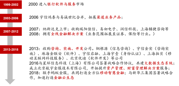 公司积极布局海外市场。公司于从2019年下半年正式开始拓展东南亚市场,通过设置子公司的方式深入布局海外市场。于2019年3月在香港设立一级子公司宇信鸿泰科技(香港)有限公司,于2019年6月,以香港宇信为主体在新加坡投资设立二级子公司YUSYS TECHNELOGIES PTE.LTD。此外,公司通过联合日本 NTT data、华为等合作伙伴,利用合作伙伴的丰富资源,提升开拓海外市场的效率。此外,公司于2015年引入的战略股东新加坡华侨银行是东南亚排名第二的金融集团,其品牌地位有助于东南亚市场的开拓。