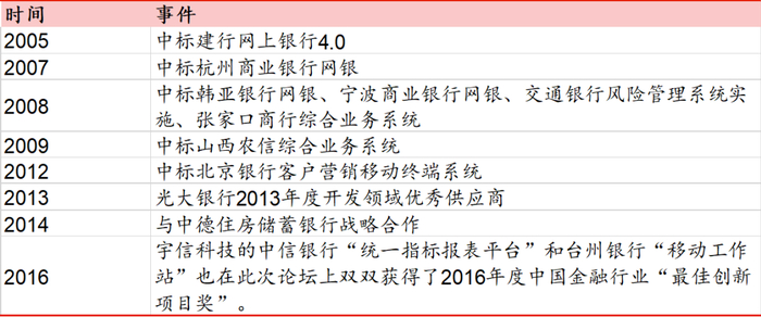 与客户的合作推动技术迭代。公司在通过与大客户合作,积累相关经验,推动技术升级,不断提升渠道、业务、管理、运营维护等方面的综合能力,有助于公司进一步开拓业务。如2005年公司中标建设银行网上银行4.0项目后,不断打磨产品,为随后中标杭州商业银行、韩亚银行、宁波商业银行打下基础。目前在消费金融领域,根据机构2020年1月9日调研公告(2020-001),公司在已经运营的24家持牌消费金融机构中公司已经获得了15家客户,并且已参股了湖北消费金融公司和晋商消费金融公司,并获得董事会席位,可以深入了解消费金融业务的业务模式,运营方式等,有助于公司持续改进产品,推动技术迭代。
